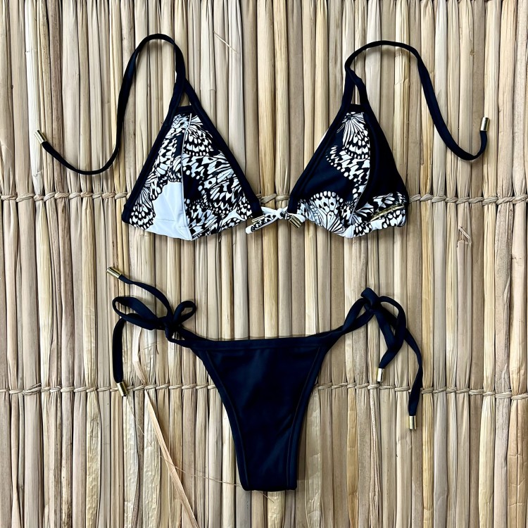 BIQUÍNI CORTININHA BORBOLETAS COM CALCINHA PRETA