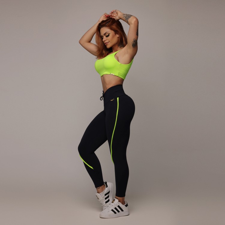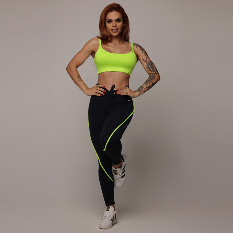 LEGGING RECORTE EMPINA BUMBUM PRETA COM AMARELO NEON