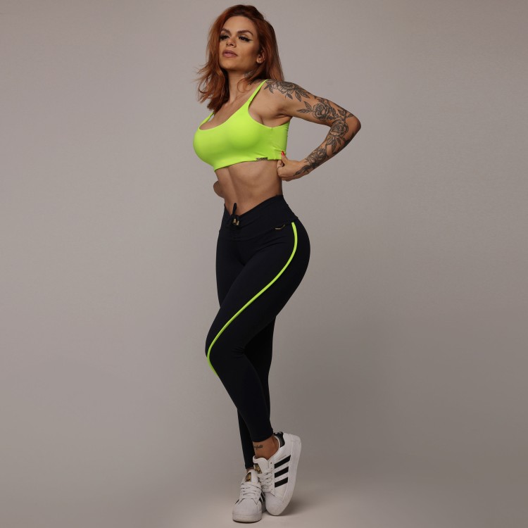 • LEGGING TREND EMPINA BUMBUM PRETA COM AMARELO NEON