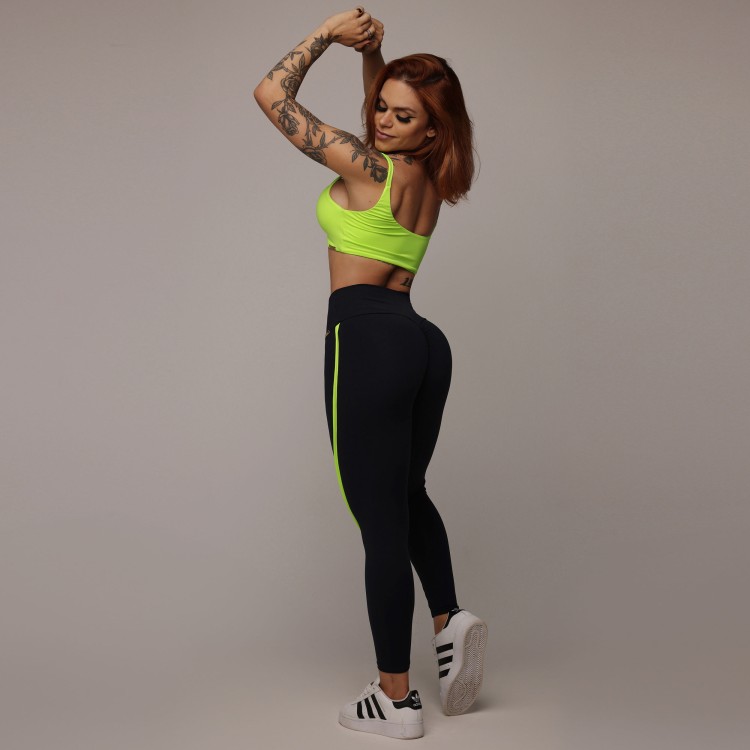 LEGGING TREND EMPINA BUMBUM PRETA COM AMARELO NEON