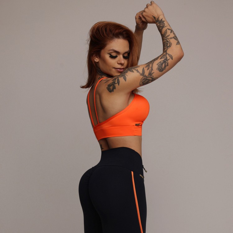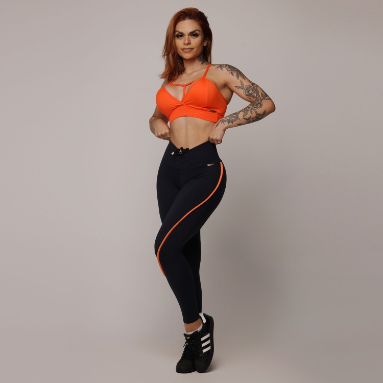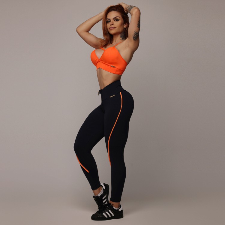 • LEGGING RECORTE EMPINA BUMBUM PRETA COM LARANJA NEON