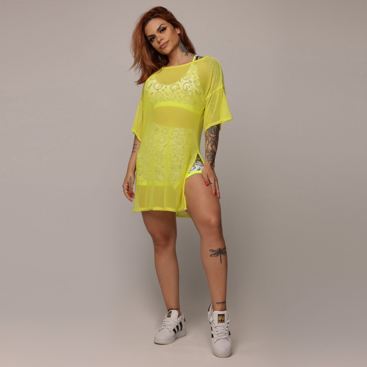 CHEMISE DE TULE AMARELO NEON