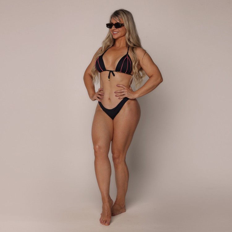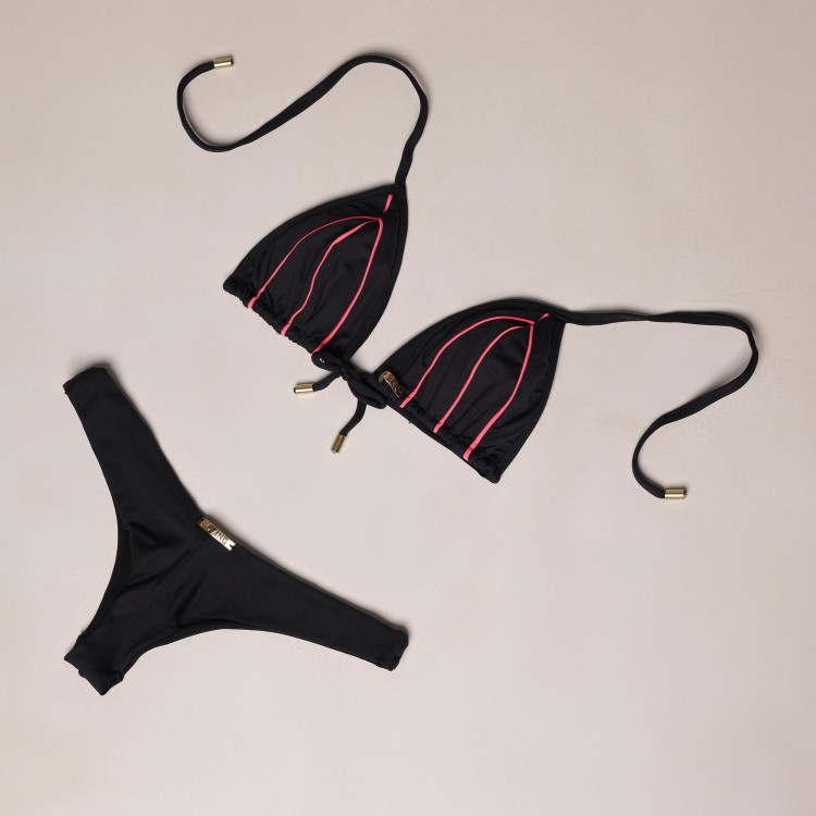 • BIQUÍNI CORTININHA PRETO COM ROSA NEON E CALCINHA CONFORT