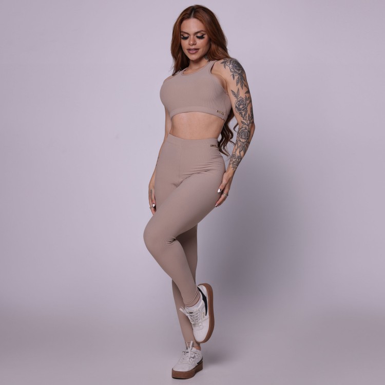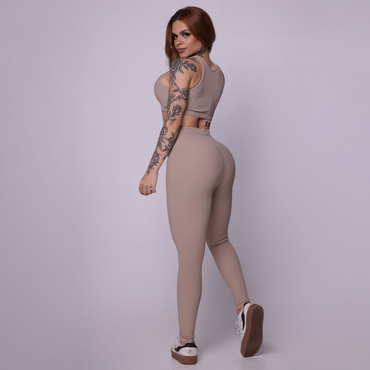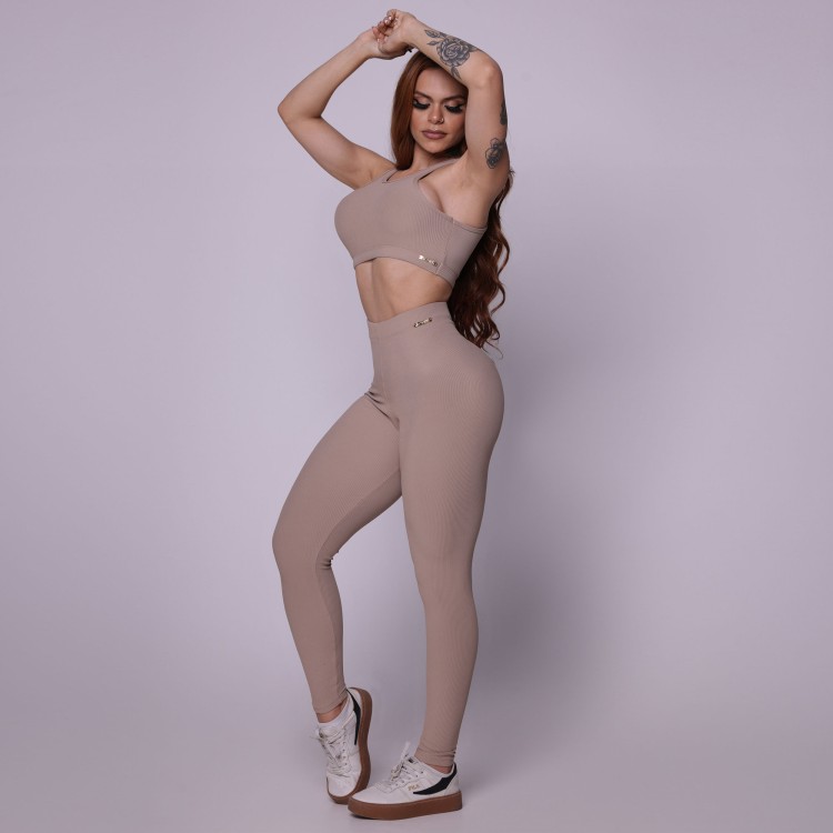 LEGGING PULSE JACQUARD CANELADO DOCE DE LEITE