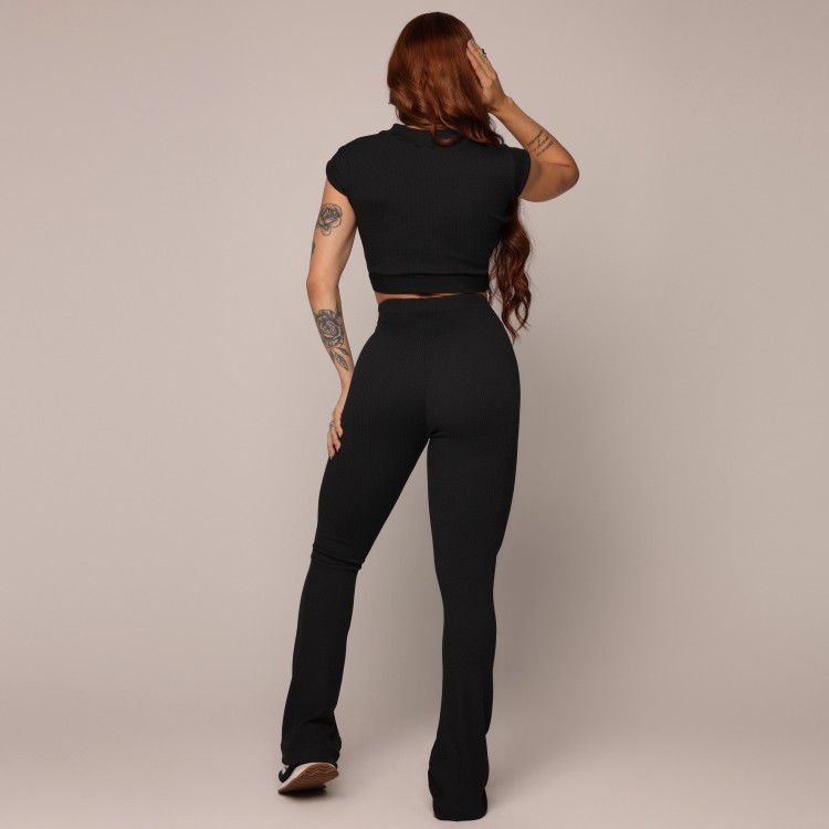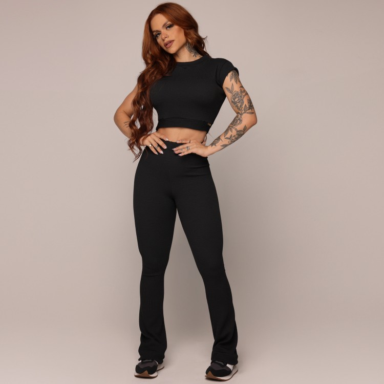 CALÇA FLARE JACQUARD CONFORT PRETO