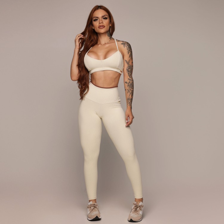 LEGGING PULSE JACQUARD CANELADO BAUNILHA