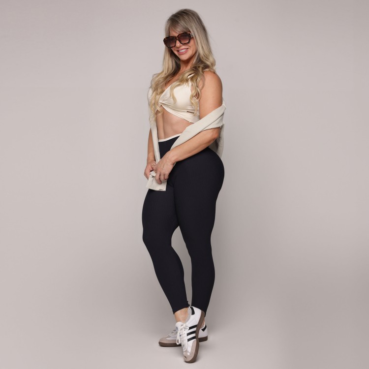 • LEGGING BICOLOR EMPINA BUMBUM JACQUARD CANELADO PRETO