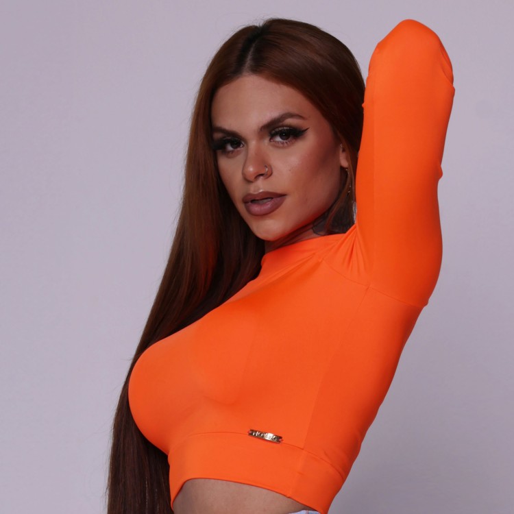 CROPPED CARMEL MANGA LONGA LARANJA NEON
