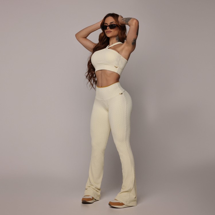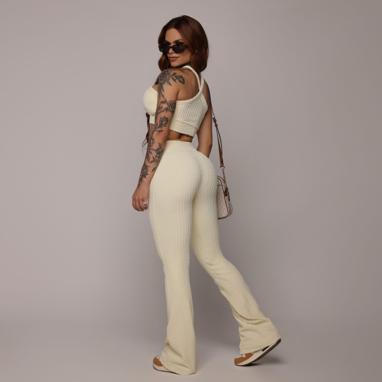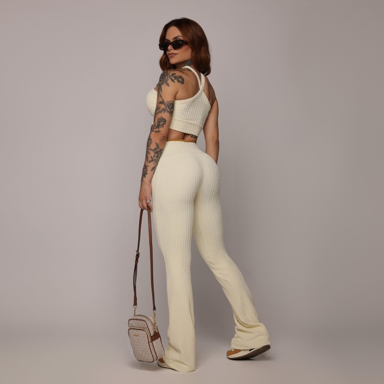 CALÇA FLARE JACQUARD SAVOIR BAUNILHA