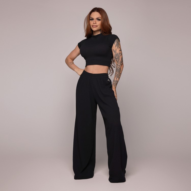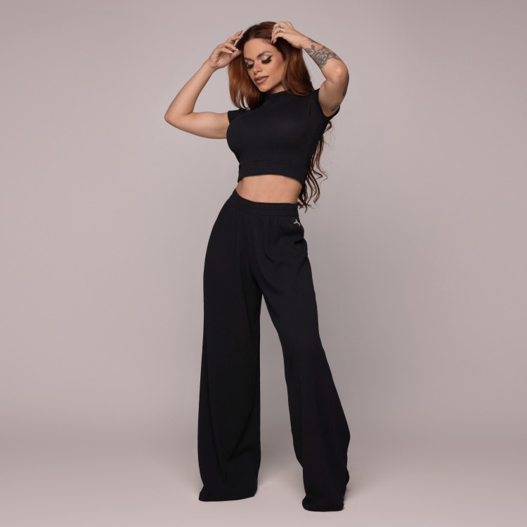Simples até o momento em que você veste. O canelado preto é daquelas escolhas que funcionam sempre, mas revelam impacto nos detalhes. Fluidez, caimento e presença em um tom que não precisa de esforço para ser notado — porque o essencial também pode impressionar.