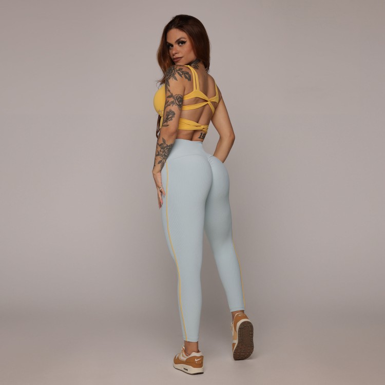 • LEGGING JUMP EMPINA BUMBUM JACQUARD CANELADO AZUL SERENITY