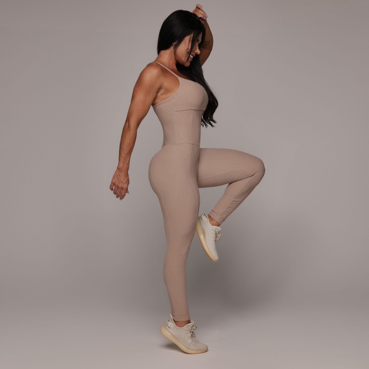 • MACACÃO QUEENS EMPINA BUMBUM JACQUARD DUNAS NUDE
