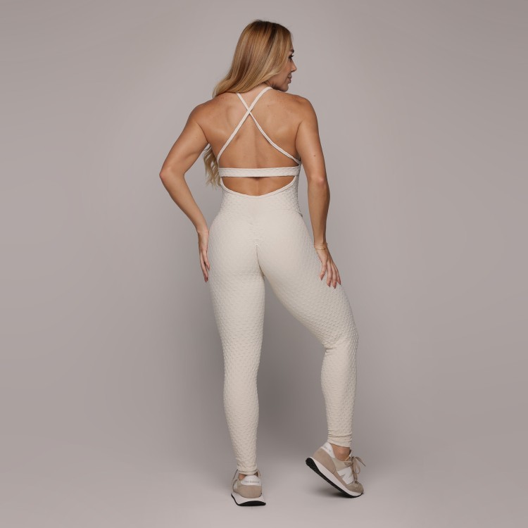 • MACACÃO GOTA EMPINA BUMBUM JACQUARD DIAMOND OFF-WHITE
