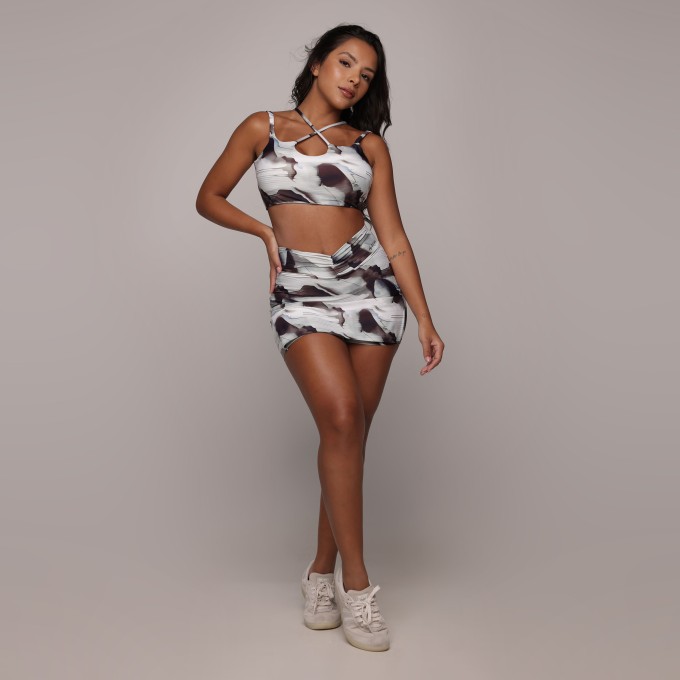 Sombras em movimento, contrastes que se cruzam em formas orgânicas. Shadow é intensidade fluida, uma estampa exclusiva que alterna luz e escuridão para revelar um visual marcante e atemporal.