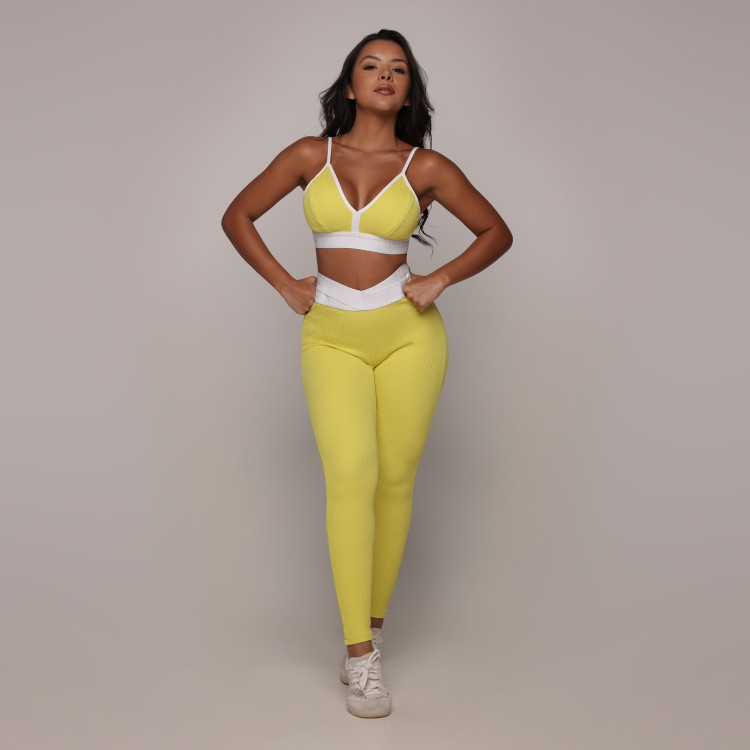 A Legging Hit une funcionalidade e estilo de forma única. O elástico na cintura proporciona um ajuste firme e seguro. O detalhe cruzado no elástico cria um efeito em V, que alonga a cintura e adiciona um toque de elegância.