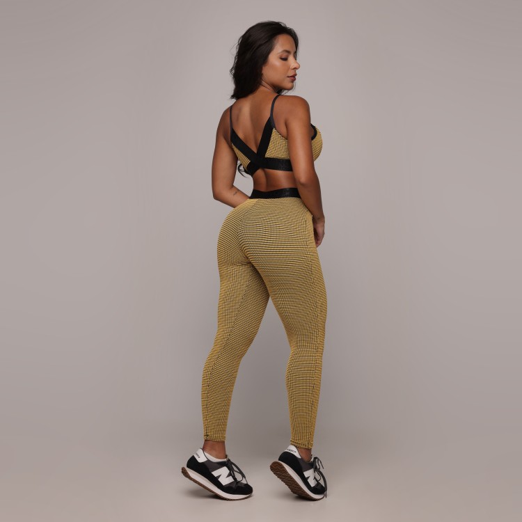 A Legging Hit une funcionalidade e estilo de forma única. O elástico na cintura proporciona um ajuste firme e seguro. O detalhe cruzado no elástico cria um efeito em V, que alonga a cintura e adiciona um toque de elegância.