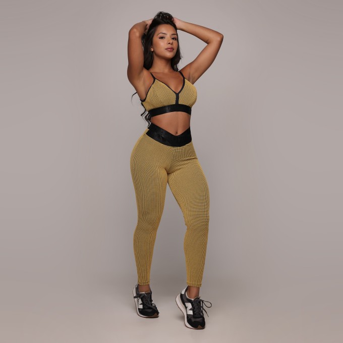 LEGGING WALK BICOLOR EMPINA BUMBUM JACQUARD DUNAS COFFEE