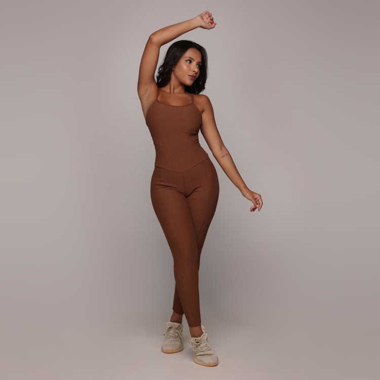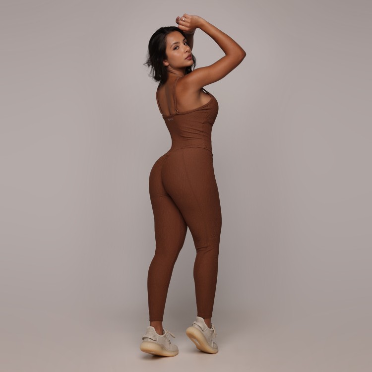 • MACACÃO QUEENS EMPINA BUMBUM JACQUARD DUNAS COFFEE