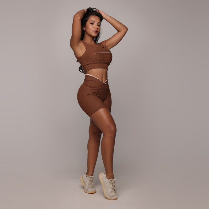 Não é só um short — é sensação em forma de movimento. Cada detalhe revela uma força silenciosa, que se impõe sem esforço. O cós alto com acabamento cruzado desenha a cintura com leveza e cria uma silhueta poderosa, sem abrir mão do conforto. Seu design moderno acompanha o corpo com naturalidade, tornando cada movimento mais livre. É a peça que não precisa chamar atenção para ser inesquecível — ela simplesmente marca presença.