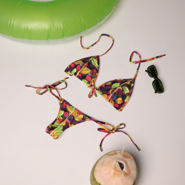 • BIQUÍNI CORTININHA FOLHAS DE OUTONO COLORIDAS