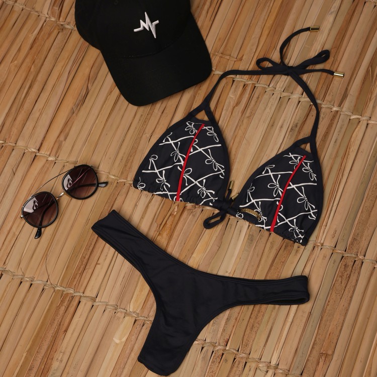BIQUÍNI CORTININHA BORBOLETAS COM CALCINHA PRETA