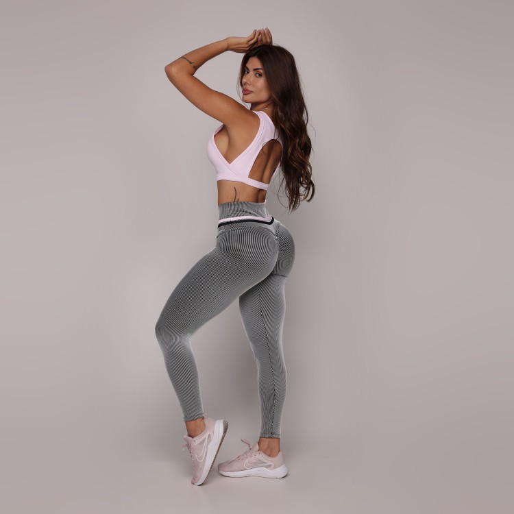 LEGGING EMPINA BUMBUM JACQUARD LINES BRANCO